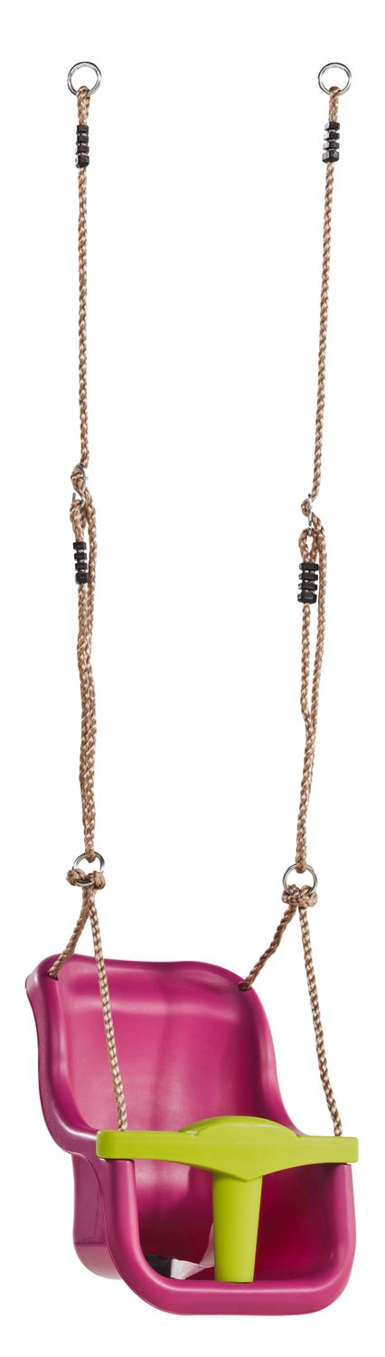 Dette smukke babygyngesæde er lavet af vejrbestandigt, robust HDPE-plastik og er lavet i ét stykke. Gyngesædets ergonomiske form beskytter dit barns ryg. Derudover har babygyngen et aftageligt T-stykke, der er fast forbundet til sædet, samt en sikkerhedssele. Sædet sikrer sikker gyngehygge udendørs. Gyngesædet er forbundet med gyngerammen på to punkter og er velegnet til børn op til 36 måneders alderen.