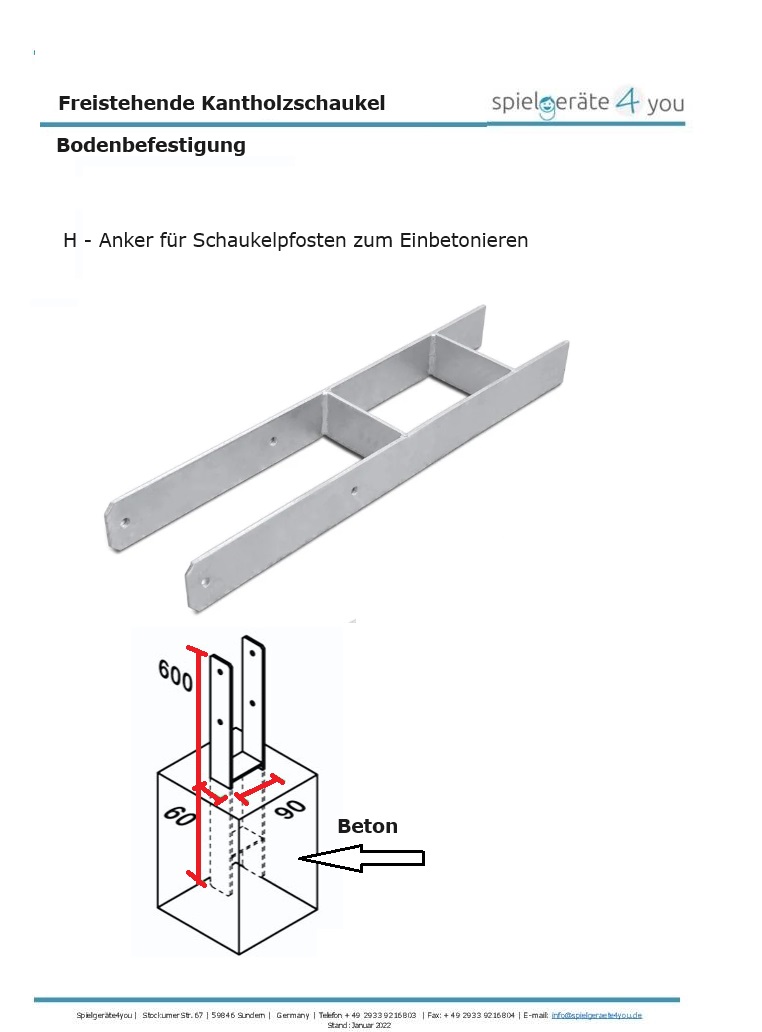 - 2 - H - Bodenanker zum Betonieren