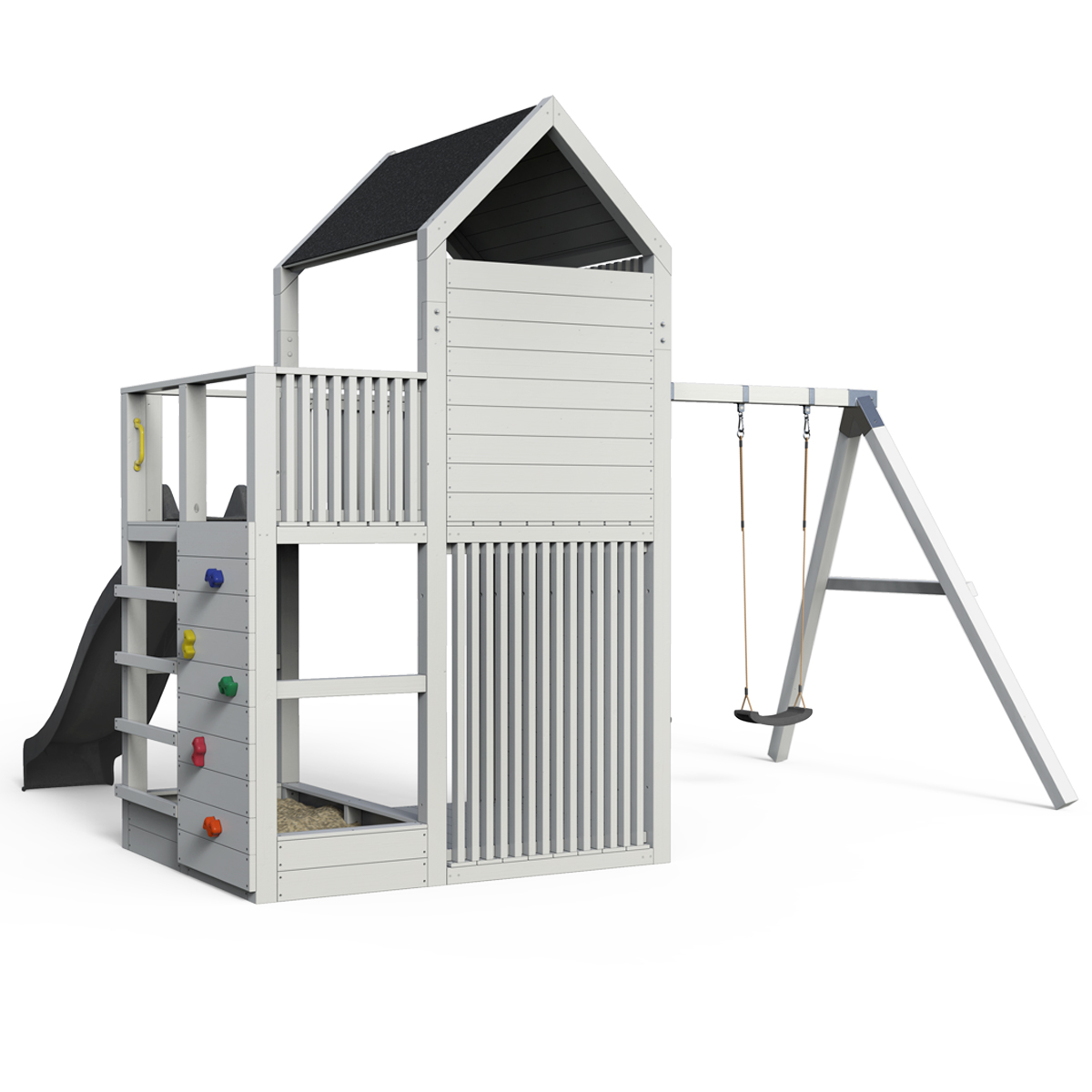 | Model | Spielturm Anton – Kompakt - Swing – Fichte - 376 - weiß / grau |