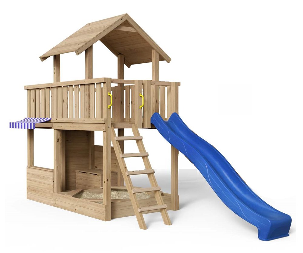 Klettern, Rutschen, im Sand buddeln, im Kaufladenspielen und das alles mit einem Turm. Der Spielturm Mia ist ein echter Gewinn für Ihren Garten und ein Traum für ihre Kinder. Ein großer Sandkasten, ein Kaufladen mit Markise, eine Rutsche mit Wasseranschluss, eine Kletterwand mit farbigen Klettersteinen, eine Spielzeugkiste mit Deckel und eine abenteuerliche Podesthöhe von 1,50 m zeichnet die Mia Spielwelt aus.