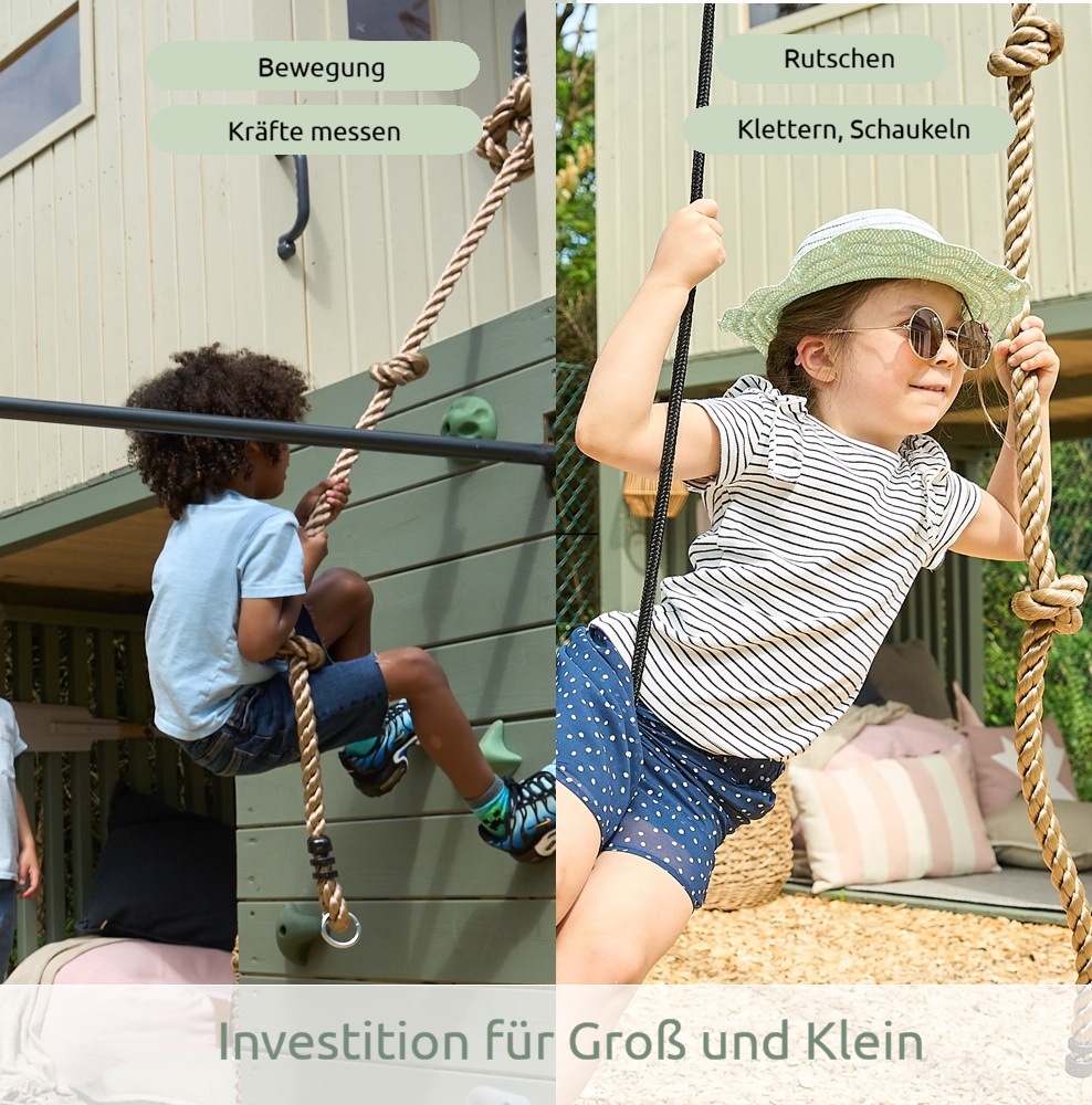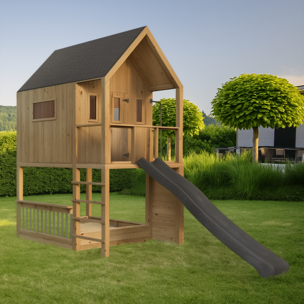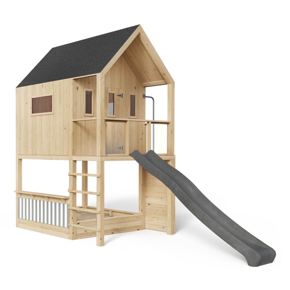 Dette moderne pælehus med en platformshøjde på 1,50 m og en generøs rumhøjde på 2,20 m byder på masser af plads og komfort, ikke kun for de mindste, men også for større børn. Med sin robuste konstruktion og robuste vægge lavet af 1,6 cm tykt materiale er den særdeles holdbar og sikker.