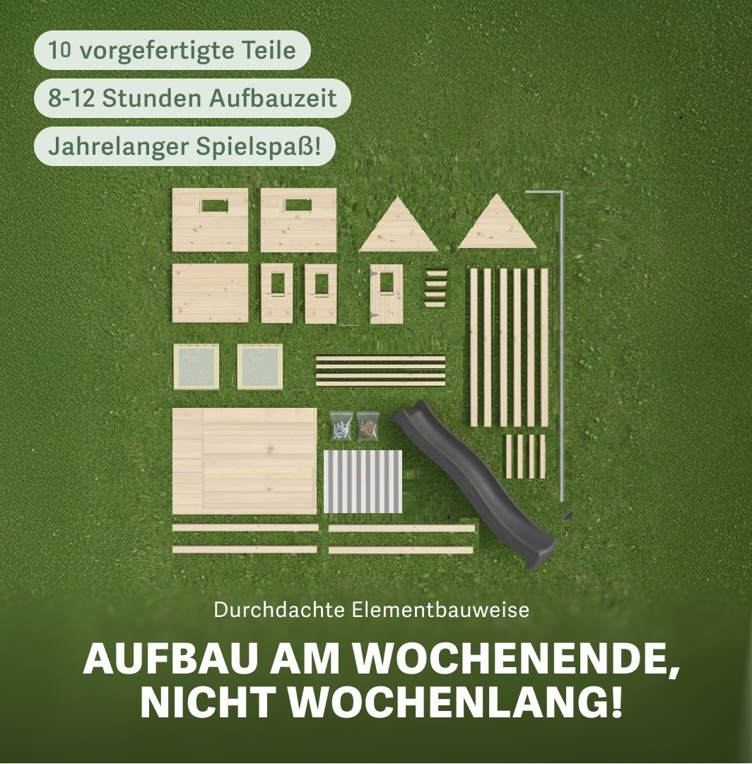 Takket være præfabrikerede elementer som husvægge og gavle er konstruktionen hurtig og nem . En gennemtænkt montagevejledning sikrer, at byggeriet er problemfrit , så pælehuset bliver det nye højdepunkt i haven på ingen tid.