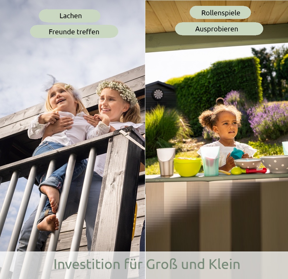 Det har altid været sandt, at leg fremmer børns sunde udvikling. Kropsbevidsthed, koordinationsevner, rum- og balanceoplevelse, fantasi og fantasi trænes særligt godt, når man spiller. Et pælehus som Karl tilbyder moduler, der opfylder alle disse krav: et kæmpe legerum med skydedør og et rundt plastvindue, ekstra vinduer på alle sider af huset og desuden: en altan, veranda, sikkerhedsrækværk, håndtag, stige, klatrevæg, sandkasse, læ, plads til butik, dobbeltgynge, bølgerutschebane og tegnebræt. Den 2,90 m lange rutsjebane har særligt gode glideegenskaber og vandtilslutning til varme sommerdage. Der er mange farver at vælge imellem.
