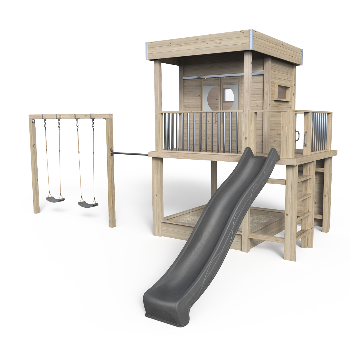 Styltehus Karl Spielwelt-850, massivt træ natur, med gynge og rutsjebane